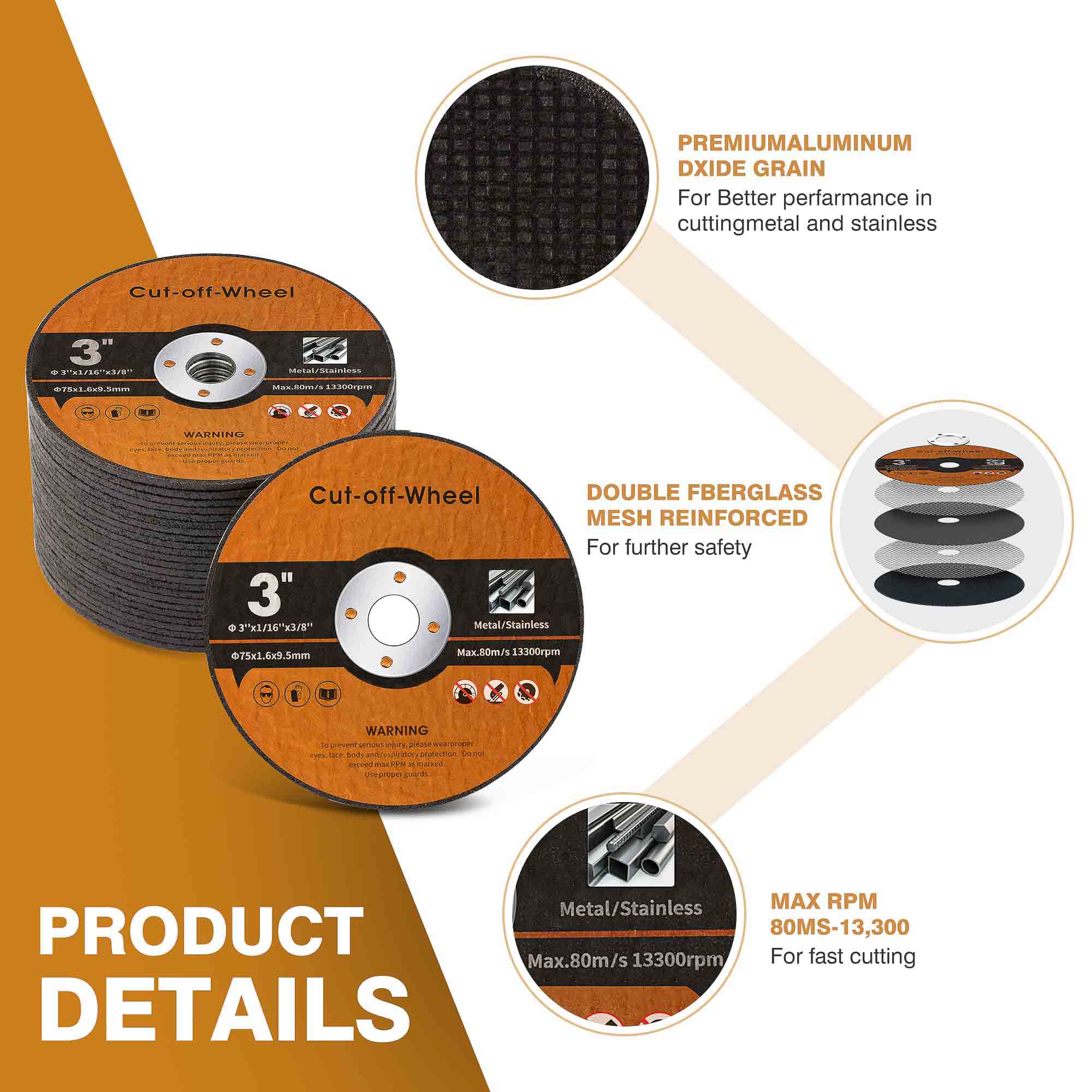 Optimeeritud osakeste jaotusega suure tihedusega alumiiniumoksiidi abrasiiviterade abil saavutavad meie kettad standardsete ketastega võrreldes roostevabast terasest ja karastatud metallidel 30% kiirema lõikekiiruse. Iseenese teravilja struktuur säilitab järjepideva lõike jõudluse kogu plaadi eluea jooksul.